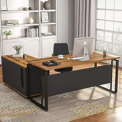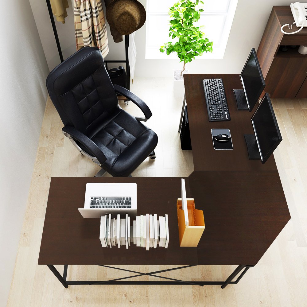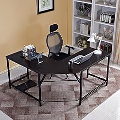 [L-Shaped Design] Double Wide desktop of E1 degree solid particle wood with high resistance on scratch & friction, space saving, provide plenty space for writing, working, handcraft, gaming and other activities.