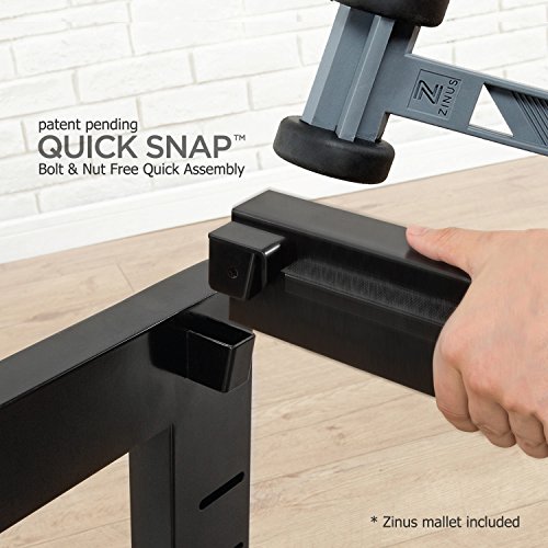 Patent pending Quick SnapTM easy “no tool” assembly in minutes / Includes openings in two of the legs to allow for attaching a headboard